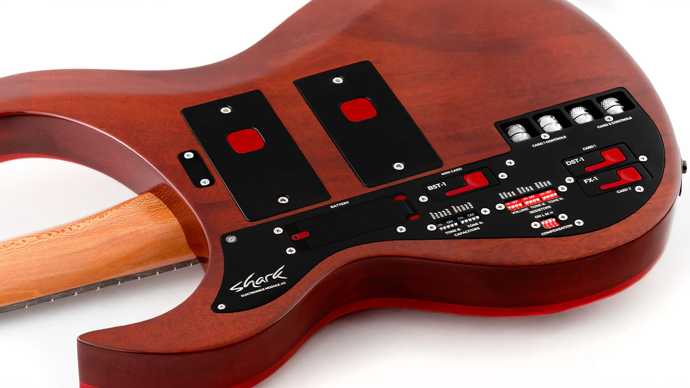 Дополнительно Shark говорит о расширенной настройке электроники: можно тонко управлять сопротивлениями и конденсаторами, влияя на отклик и общий «тембровой почерк». По сути, компания пытается перенести привычную модульность из мира педалбордов и студийных сетапов прямо внутрь гитары.