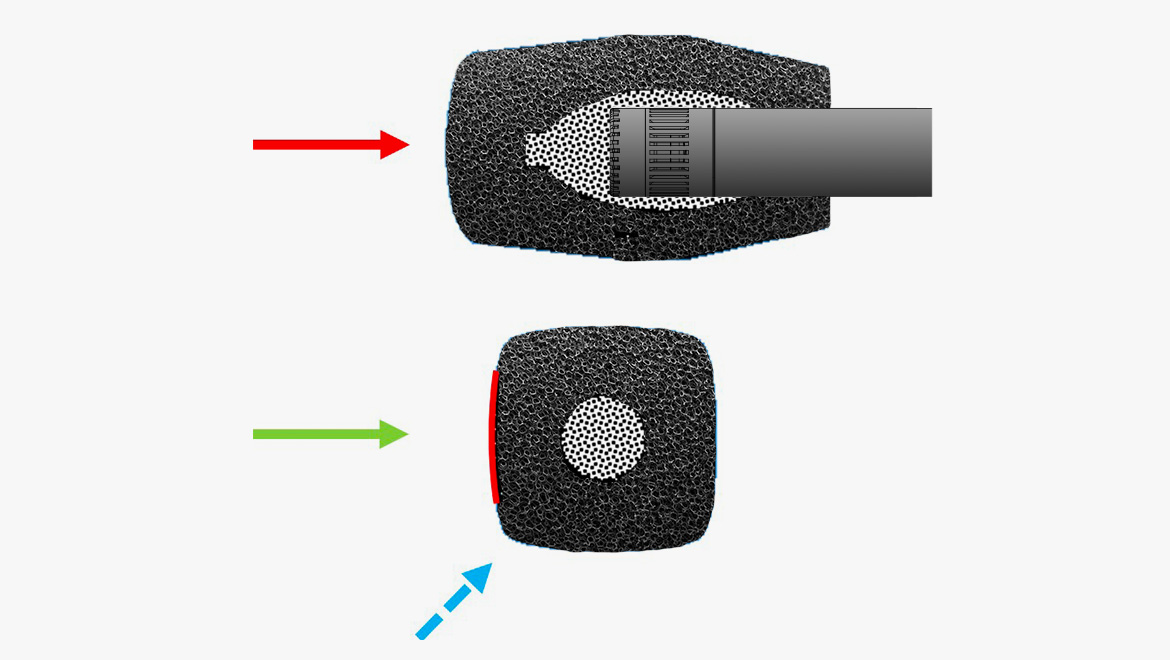 Если ветер дует с определённого направления, достаточно повернуть микрофон или человека так, чтобы поток воздуха не попадал прямо на мембрану. Для направленных микрофонов это особенно актуально — угол в 90° к потоку уже снижает проблему.
